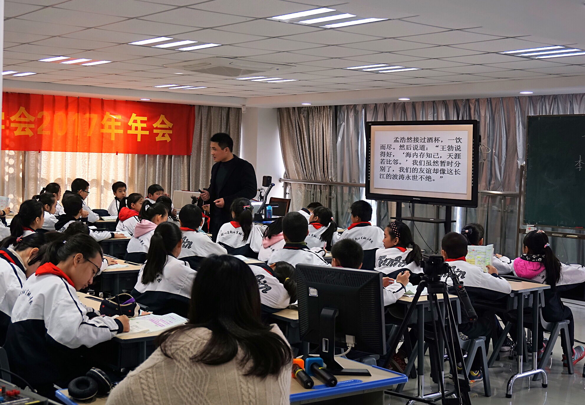高新区实验小学刘贤闻老师执教的《黄鹤楼送别》是一篇“文包诗”的课文,教学对象为五年级学生。刘老师重视学生的朗读,在教学过程中利用反复朗读让学生体会文中所传达的李、孟二人的依依惜别之情。刘老师授课中常与学生互动,善于引导学生思考,为全体与会人员呈现了一堂精彩纷呈的公开课。